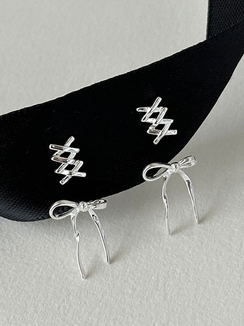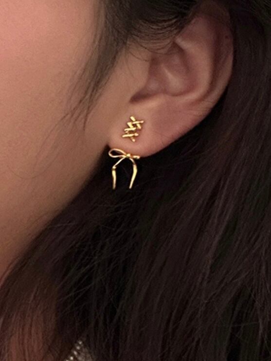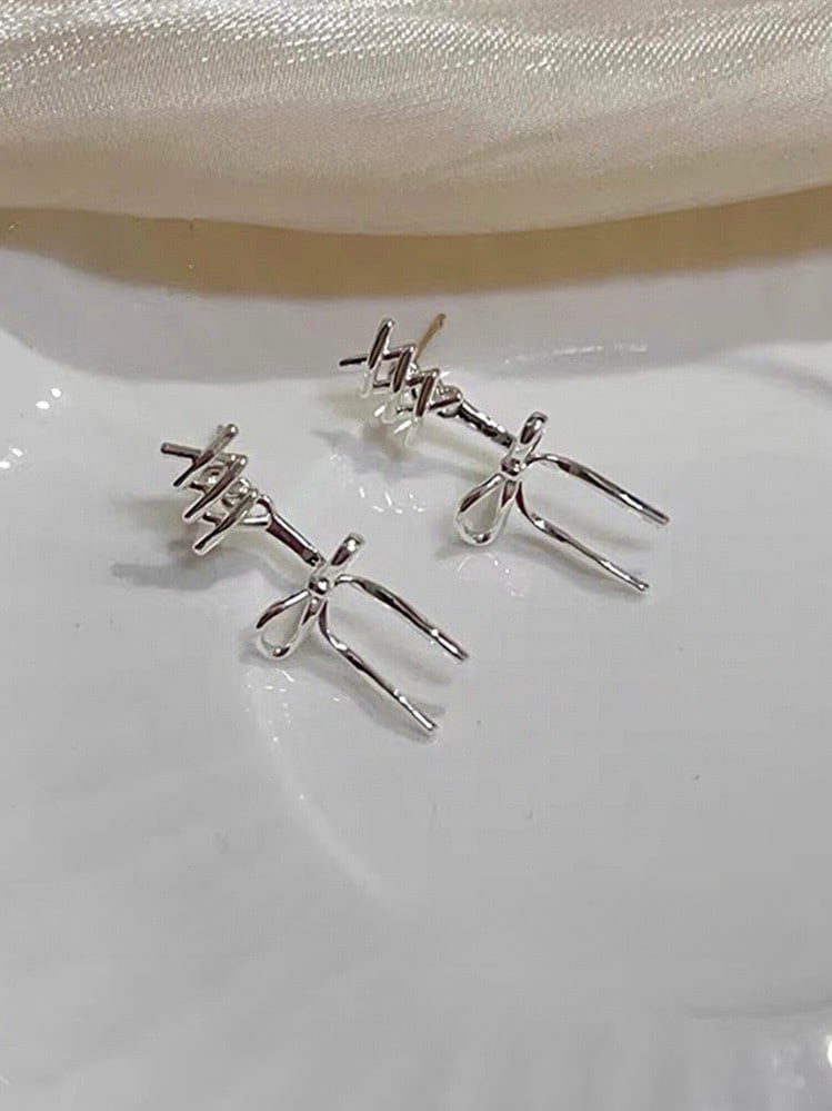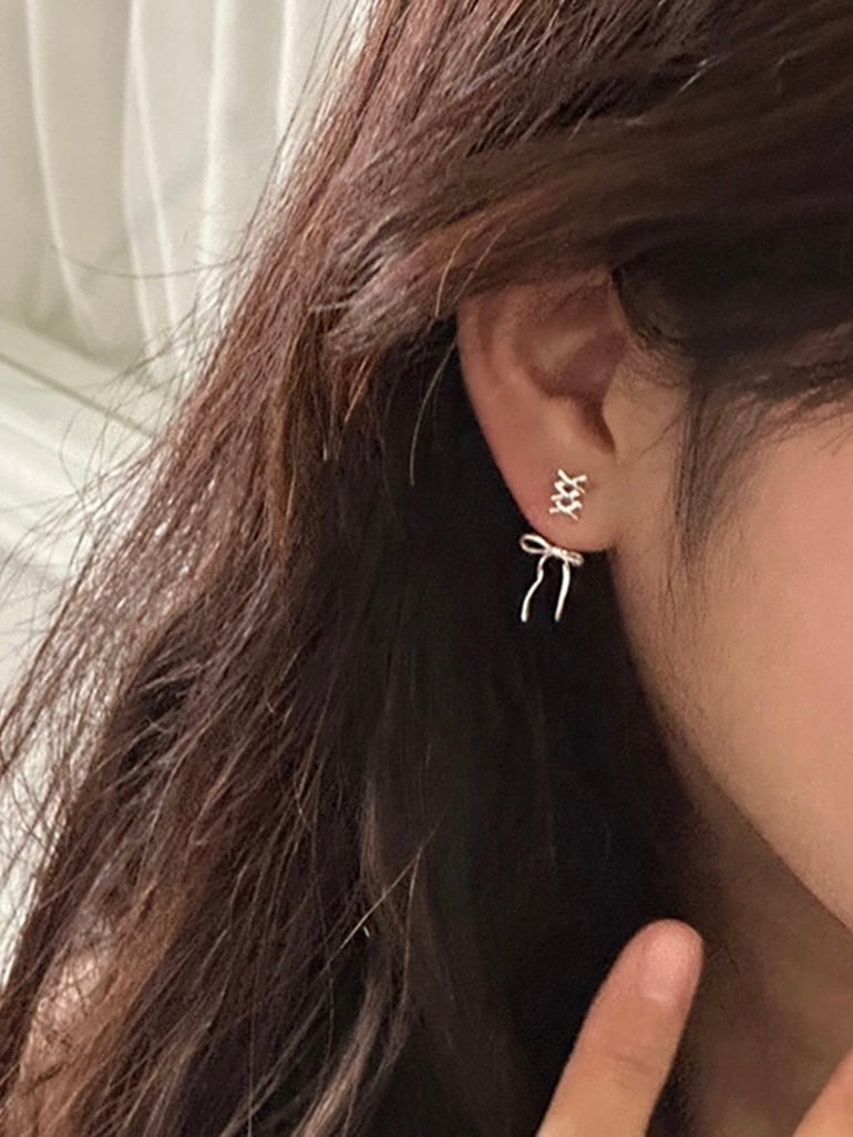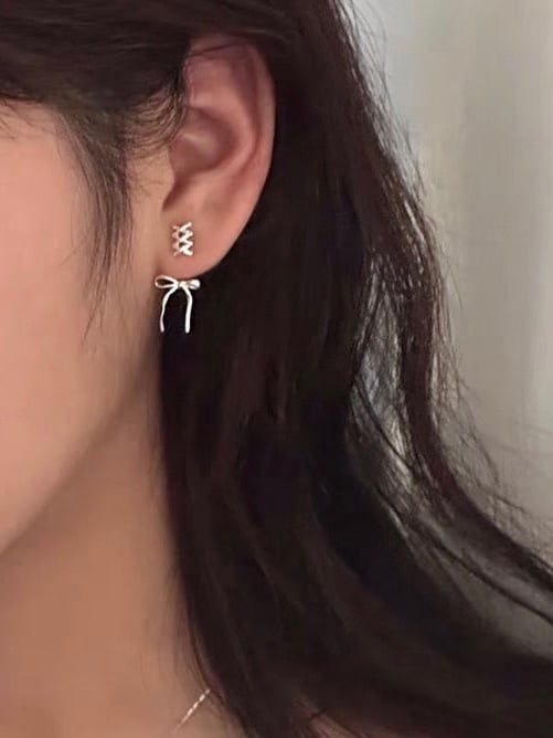 リボンが耳元から垂れているようなキュートなデザインのピアスです。