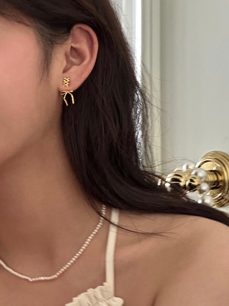 リボン部分は取り外し可能になっており、ツイスト部分だけでシンプルなピアスにもなります。
