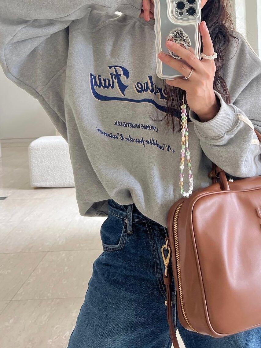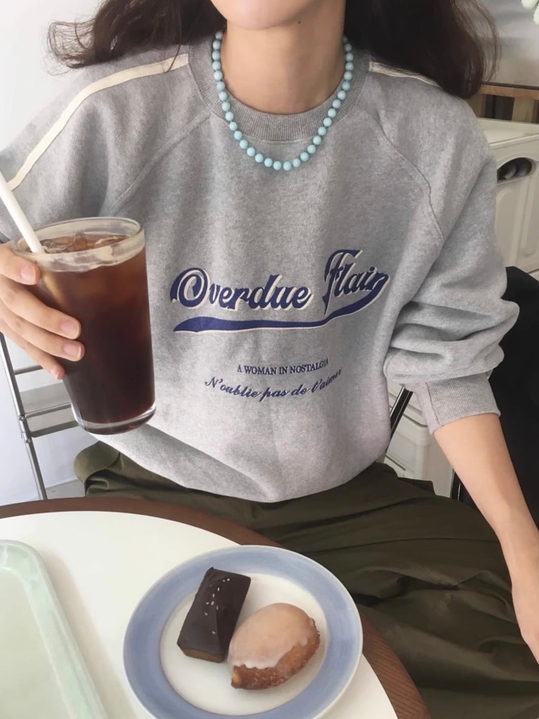 グレーとブルーのロゴが相性抜群なトレーナー。