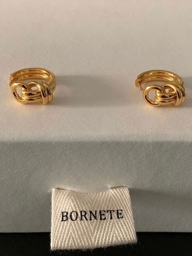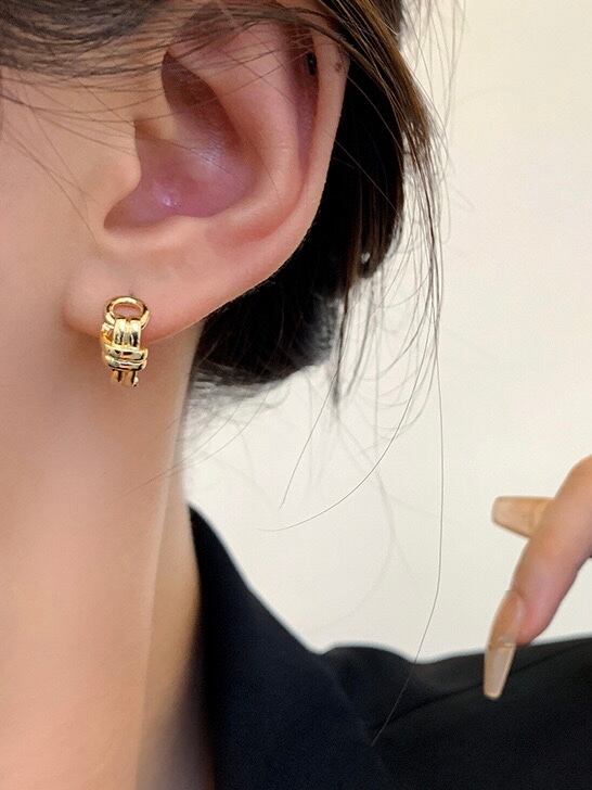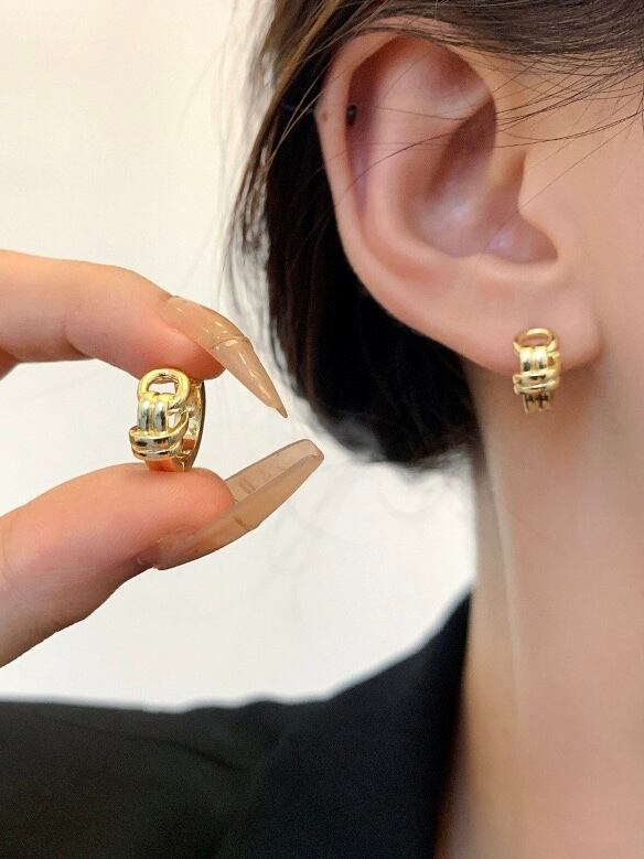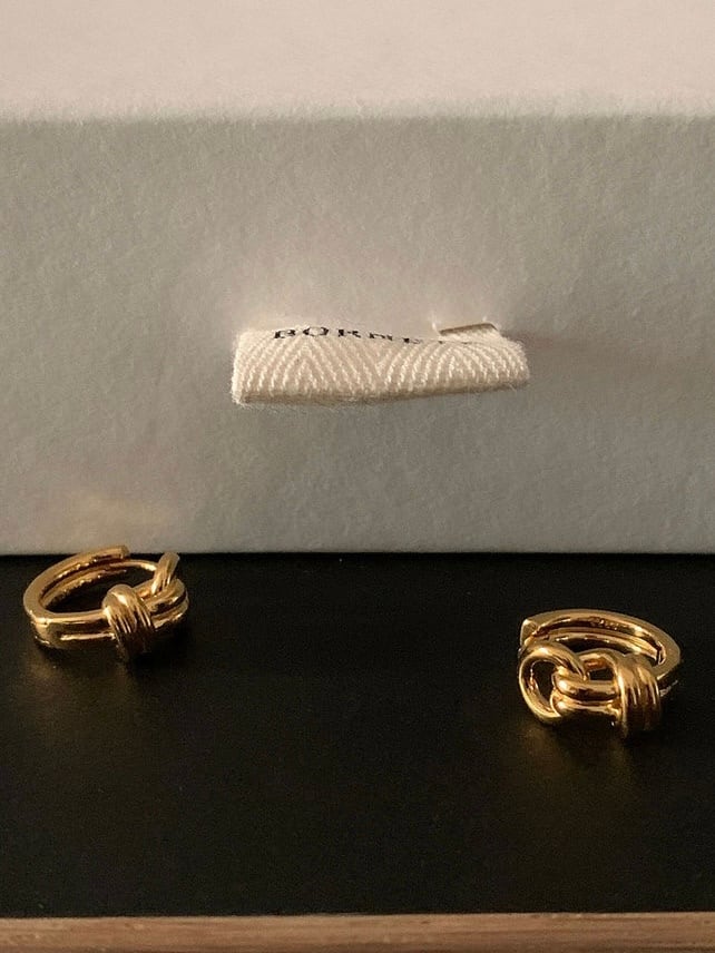 ゴールドと結び目のようなデザインが高級感あるピアスです。