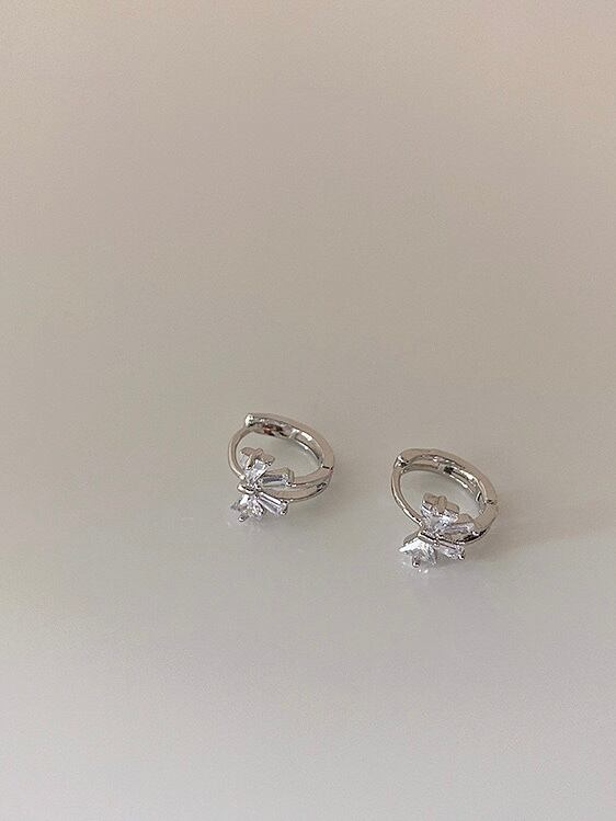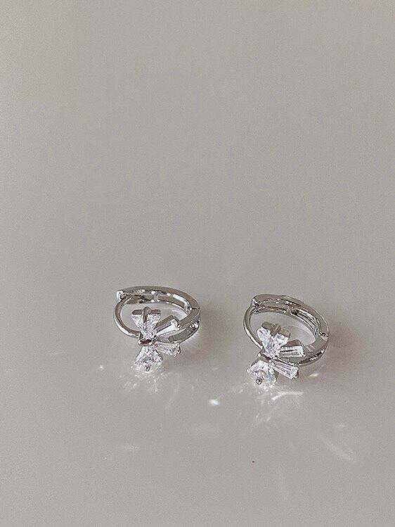 クリスタルのリボンとシルバーの組み合わせが大人っぽいピアスです。