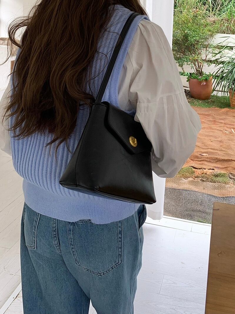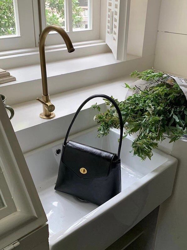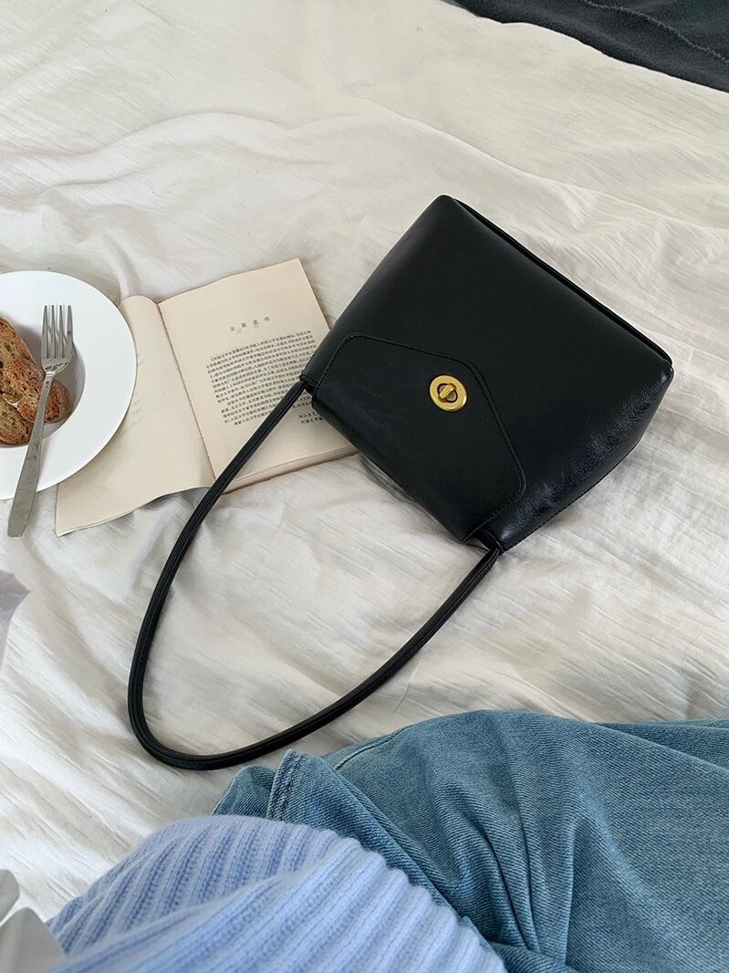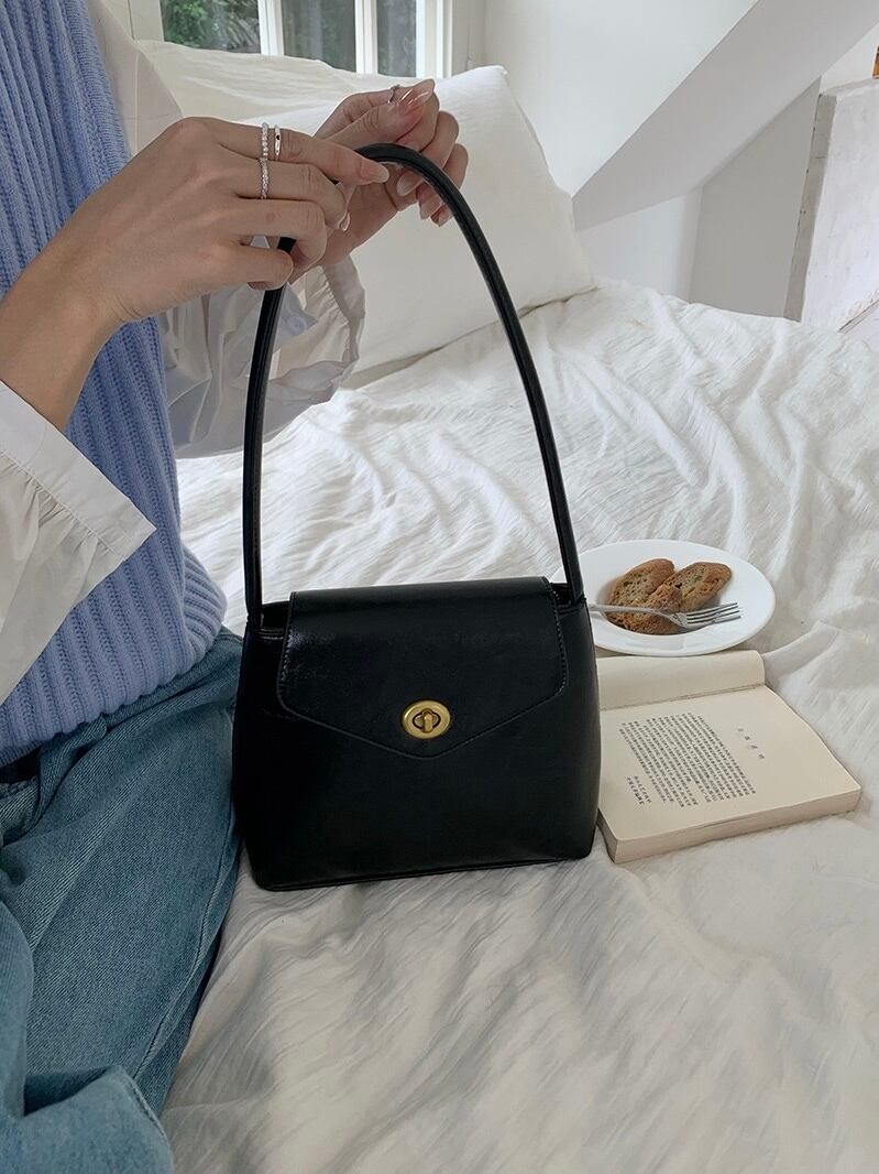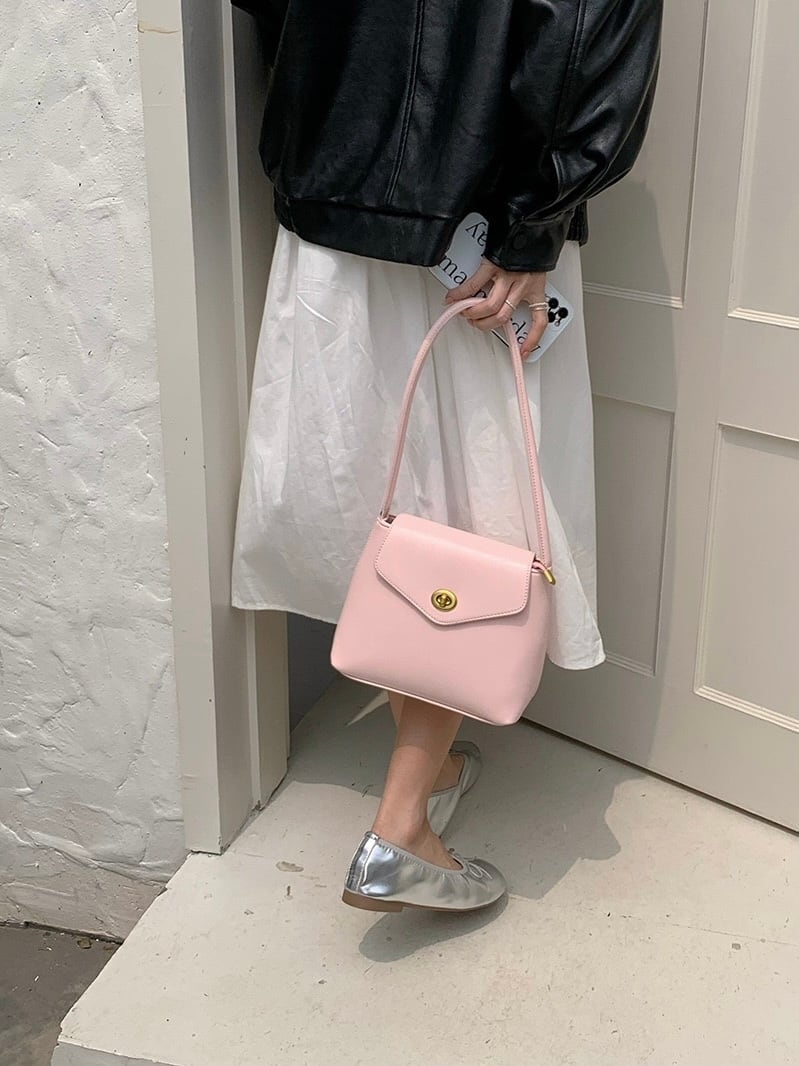 シンプルなデザインながらもおしゃれなスクエアシェイプのショルダーバッグです。