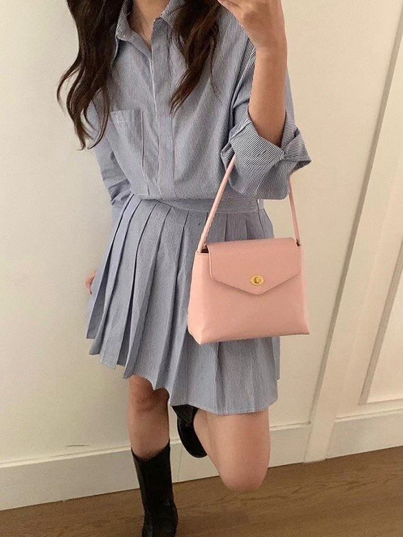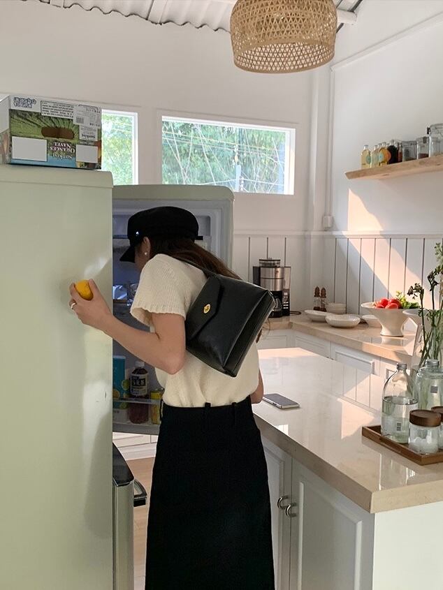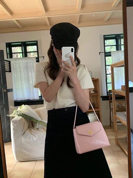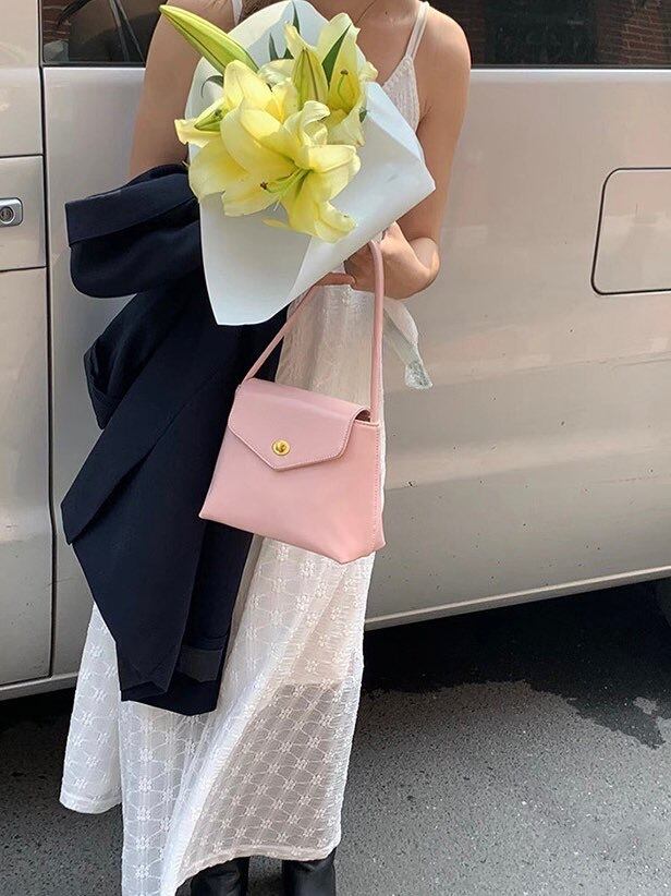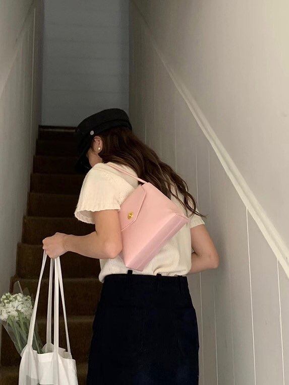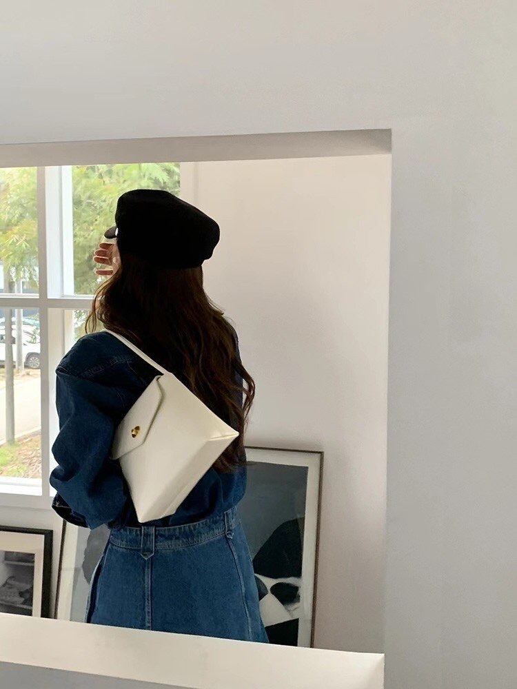 シンプルなデザインながらもおしゃれなスクエアシェイプのショルダーバッグです。