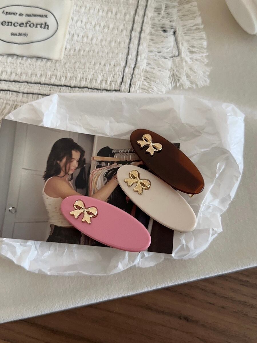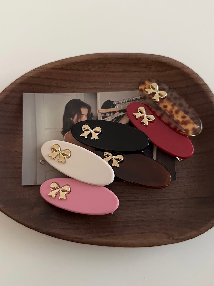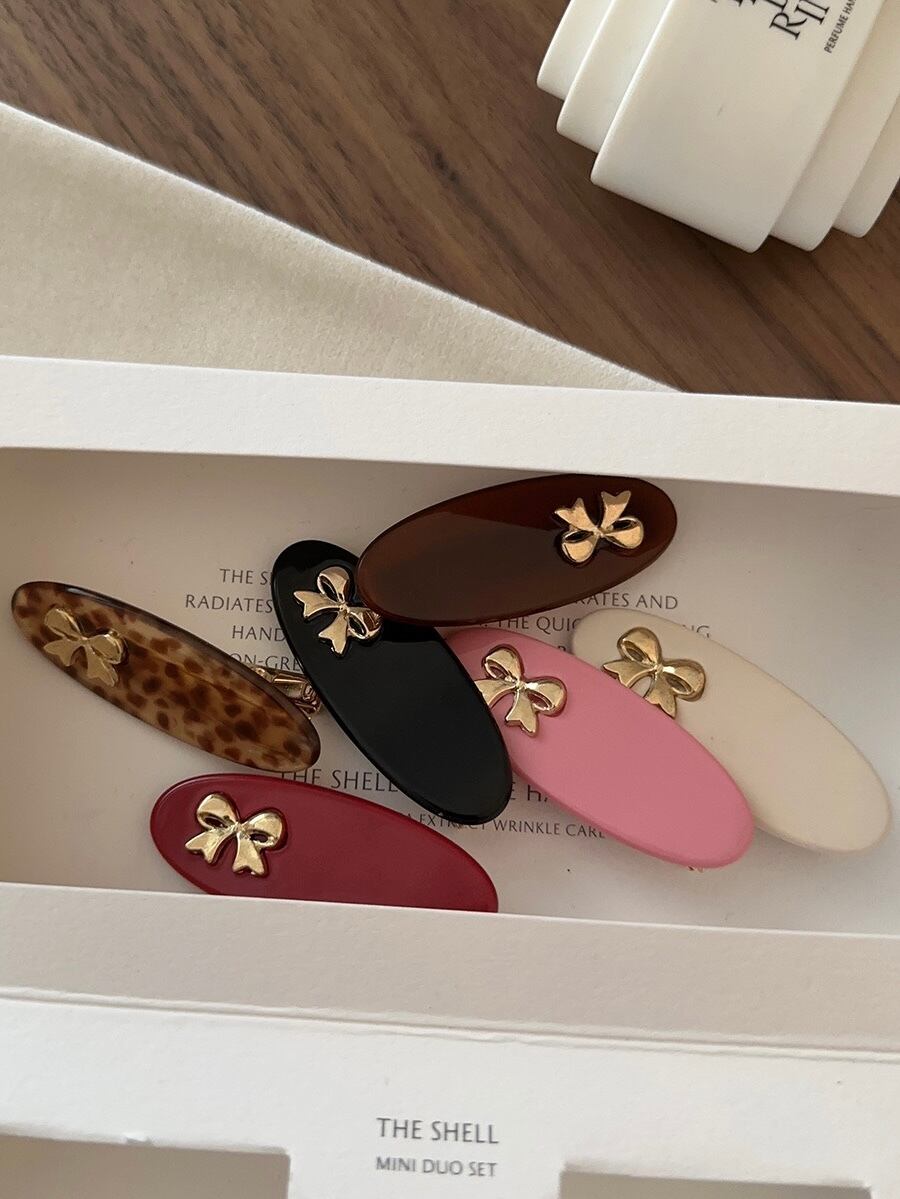 ゴールドのリボンがポイントのミニヘアクリップです。