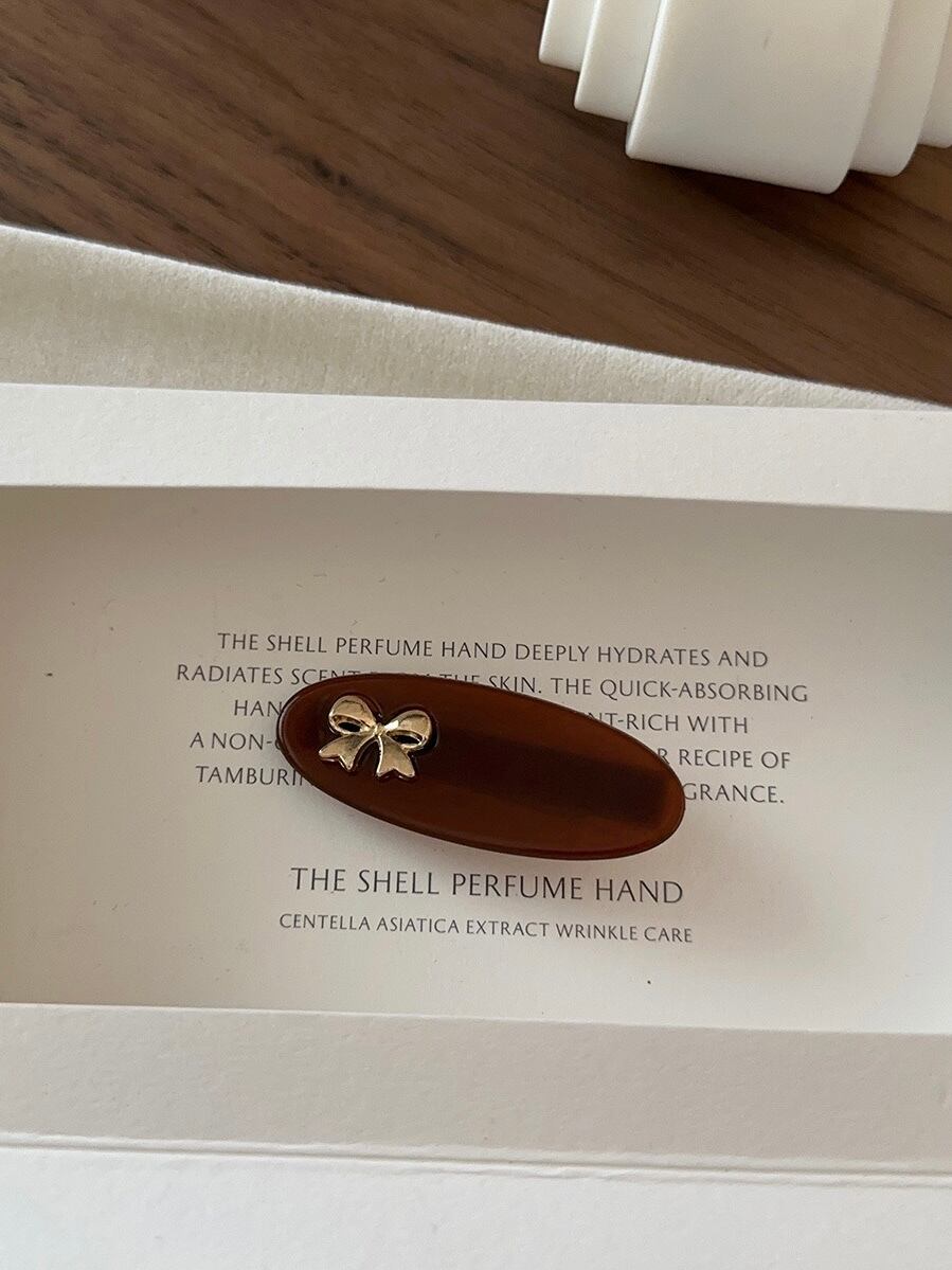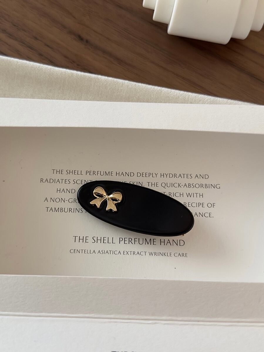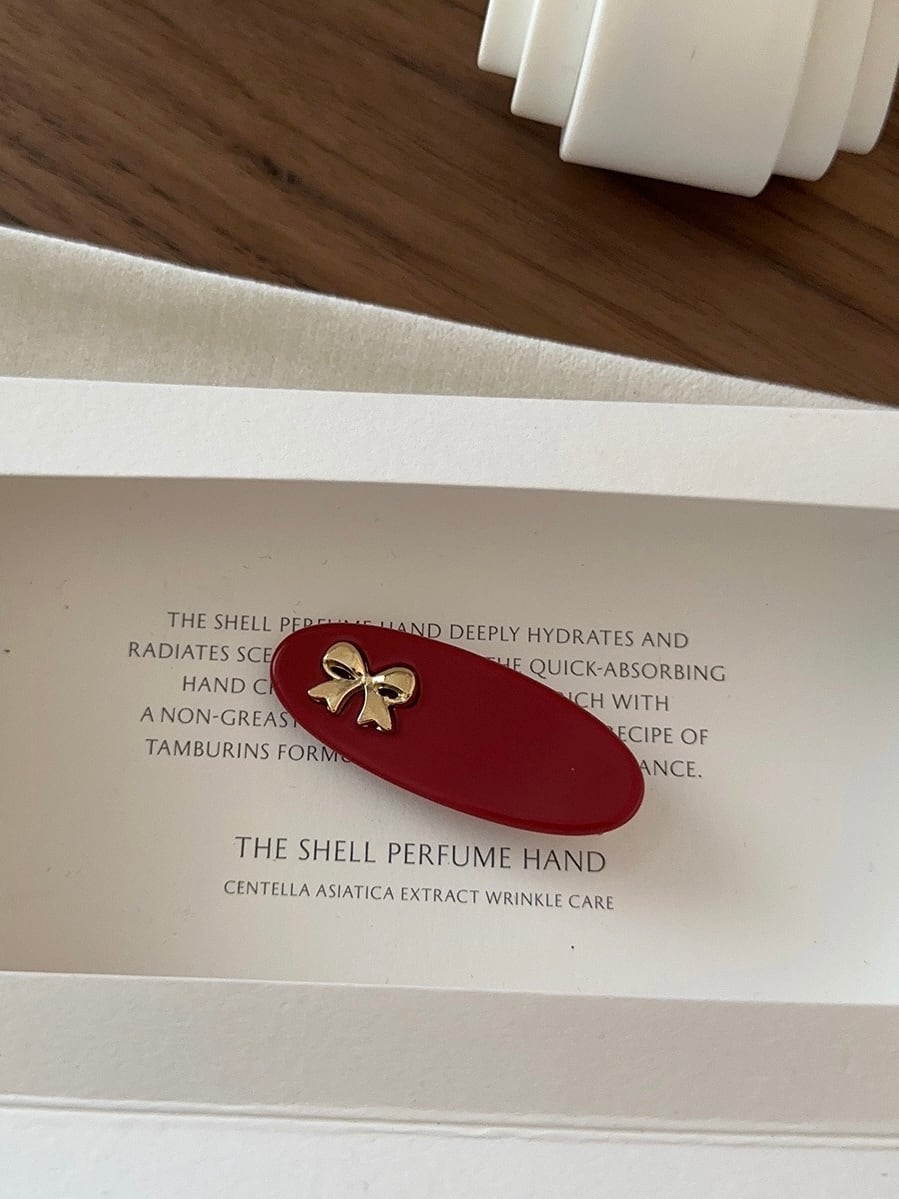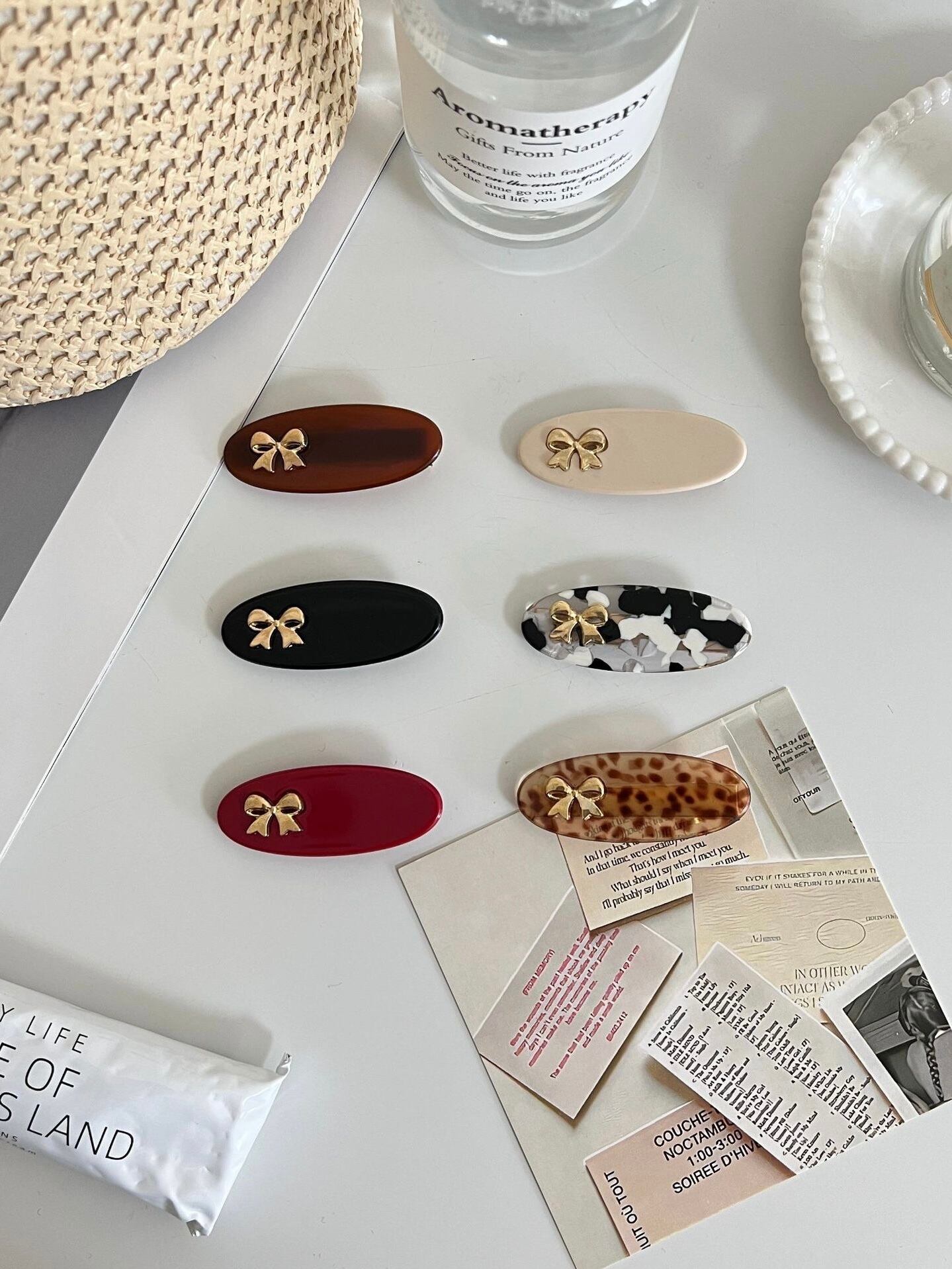 ゴールドのリボンがポイントのミニヘアクリップです。