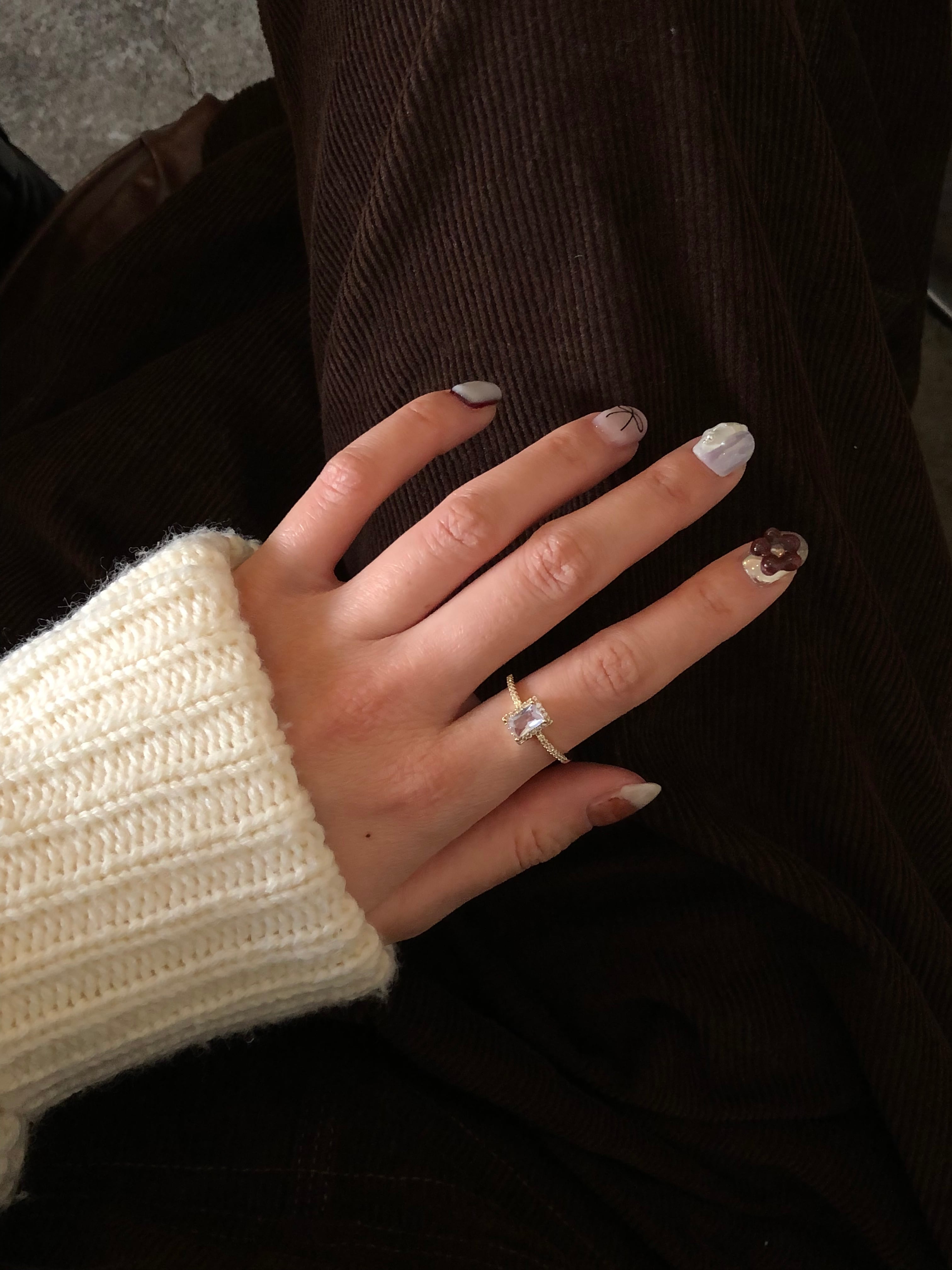 ビジューがキラキラとして華やかな印象を与えてくれるリングです。
