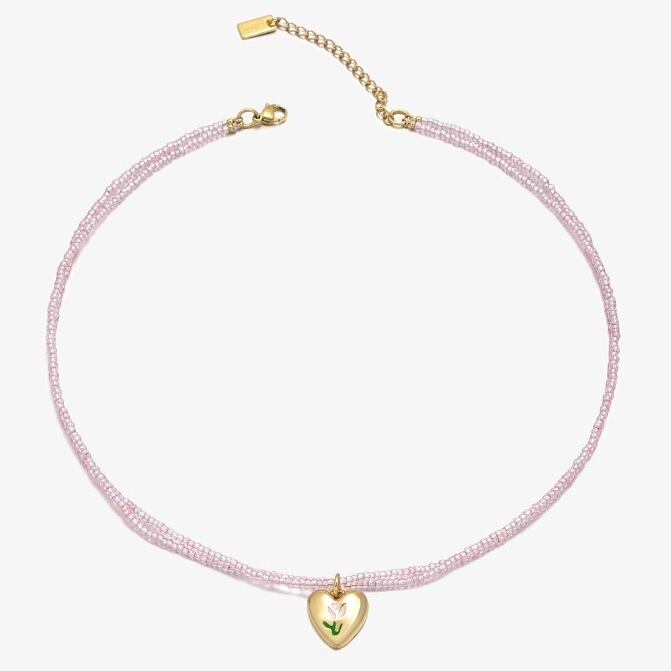 ビーズがラブリーな夏らしいネックレス。