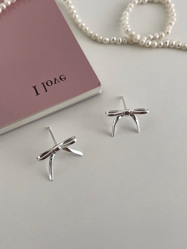 細めのリボンで可愛くなりすぎず、大人っぽくきれいに魅せてくれるピアスです。