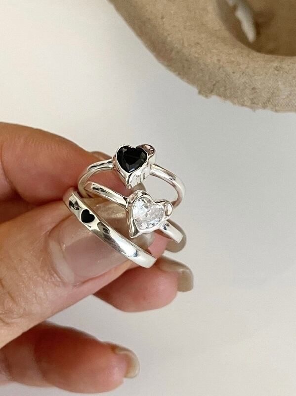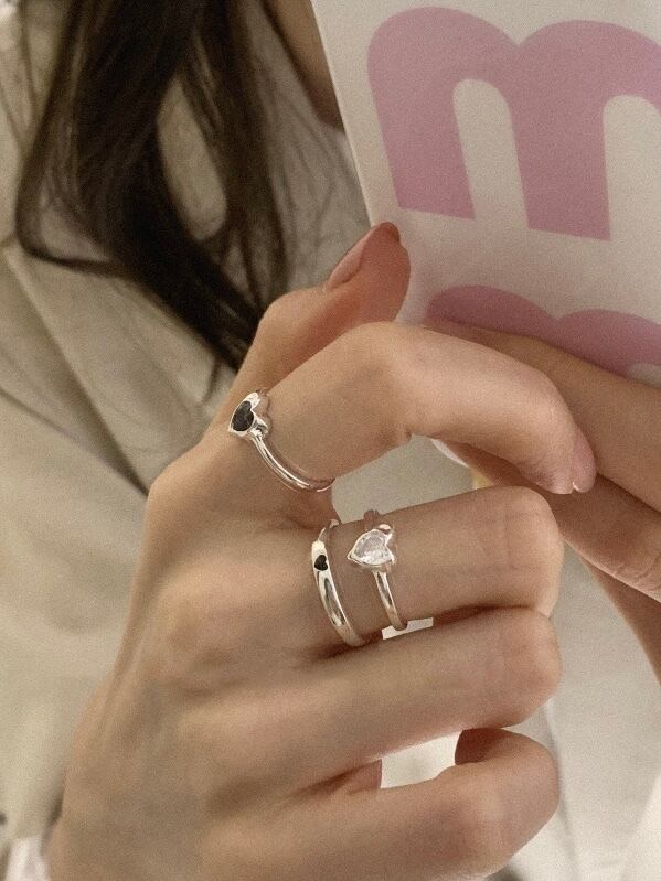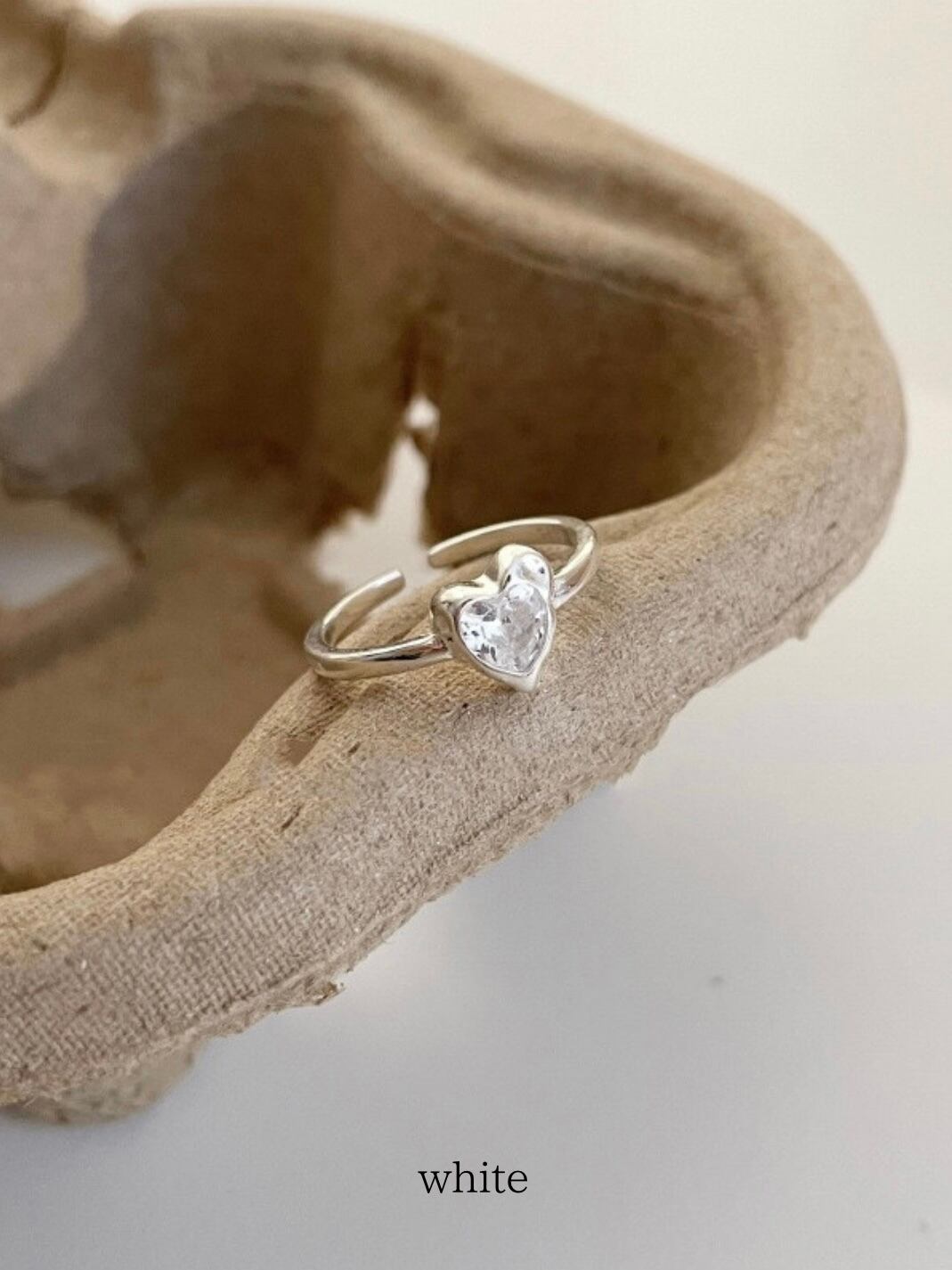 シルバーとストーンの組み合わせが大人可愛いハートモチーフのリング。