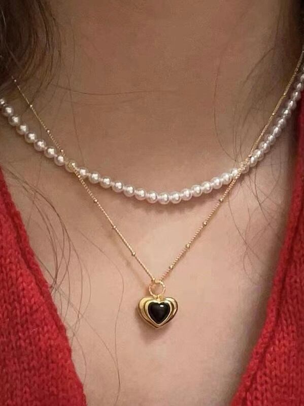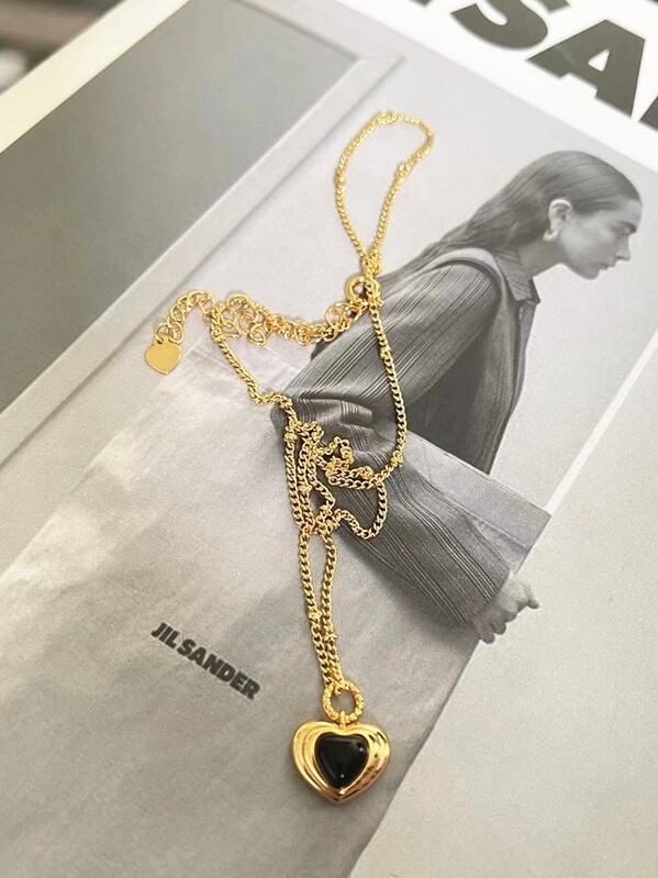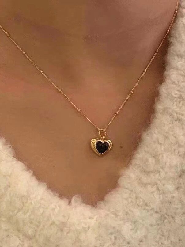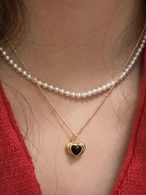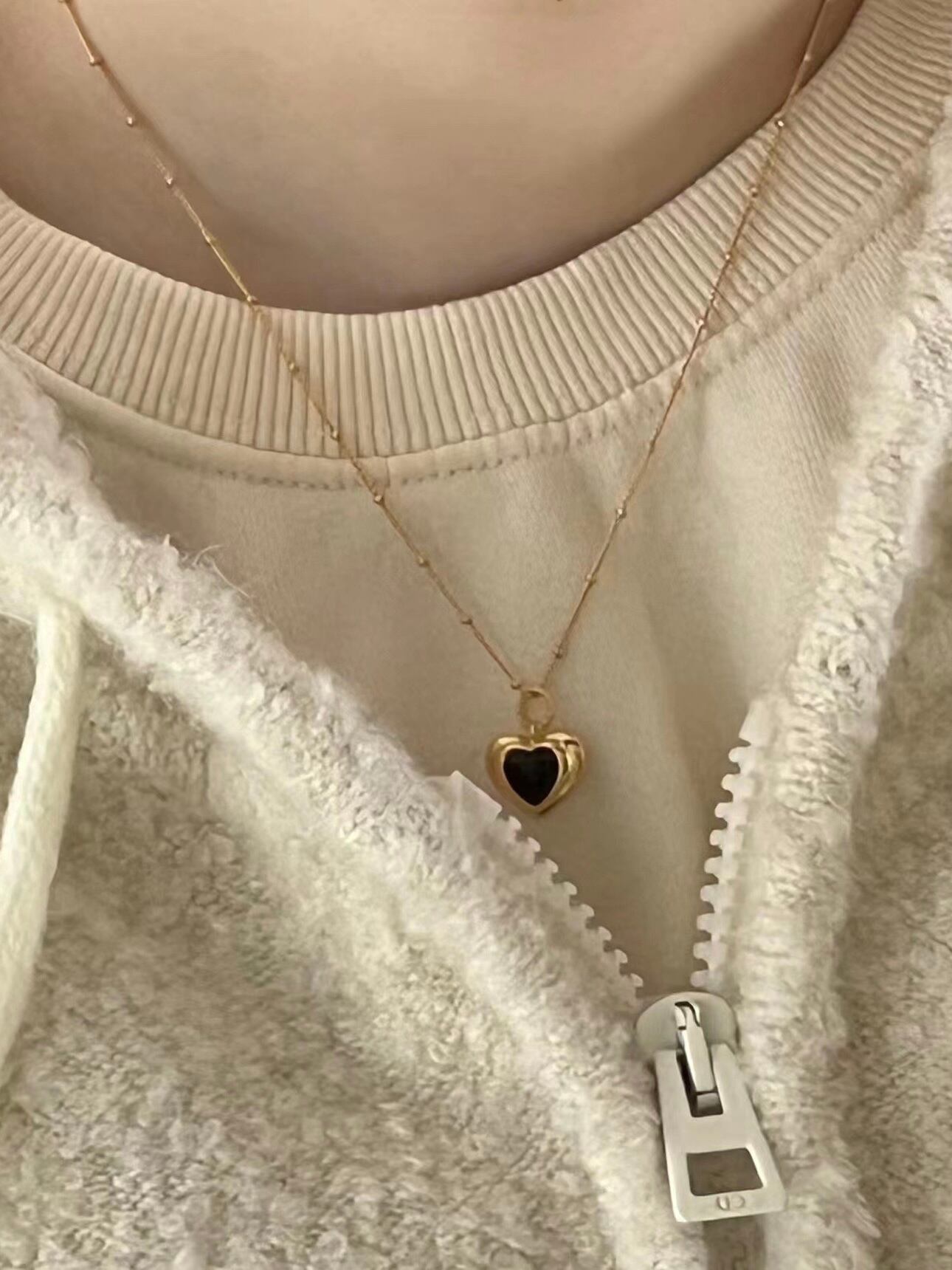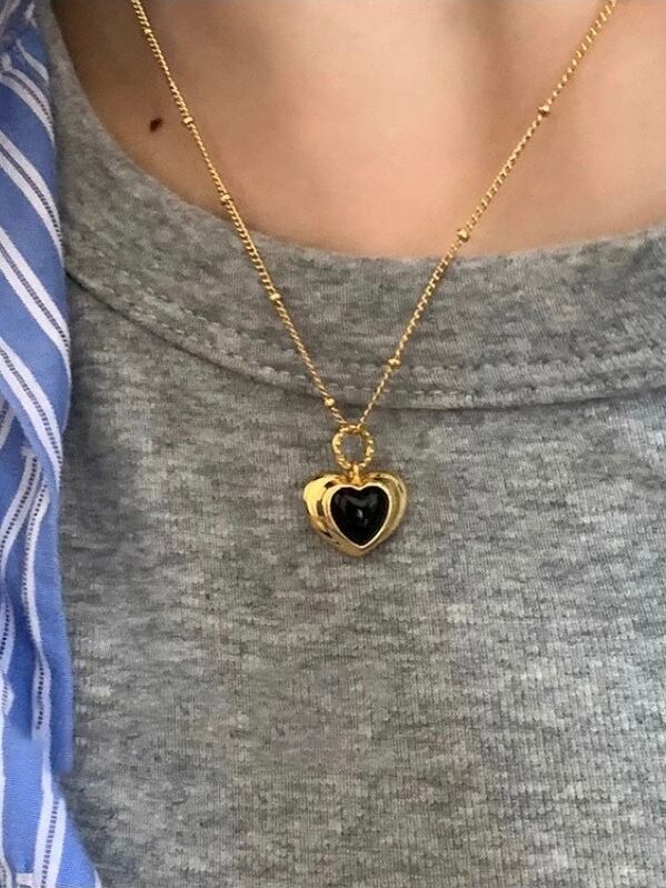 ゴールドにブラックのハートがポイントのヴィンテージ感あるネックレス。