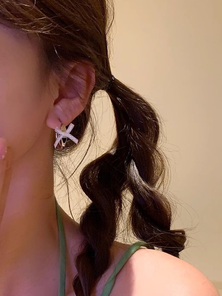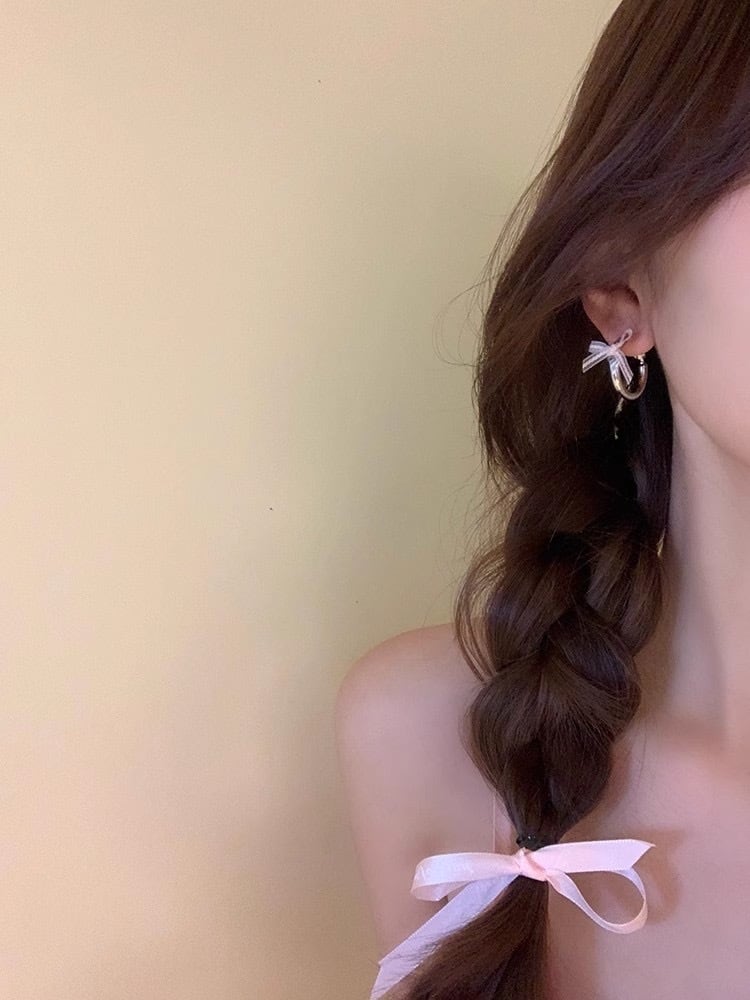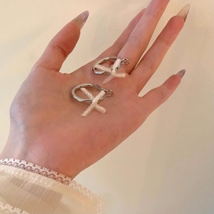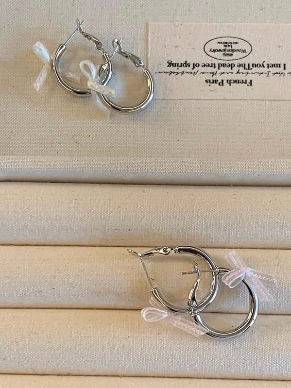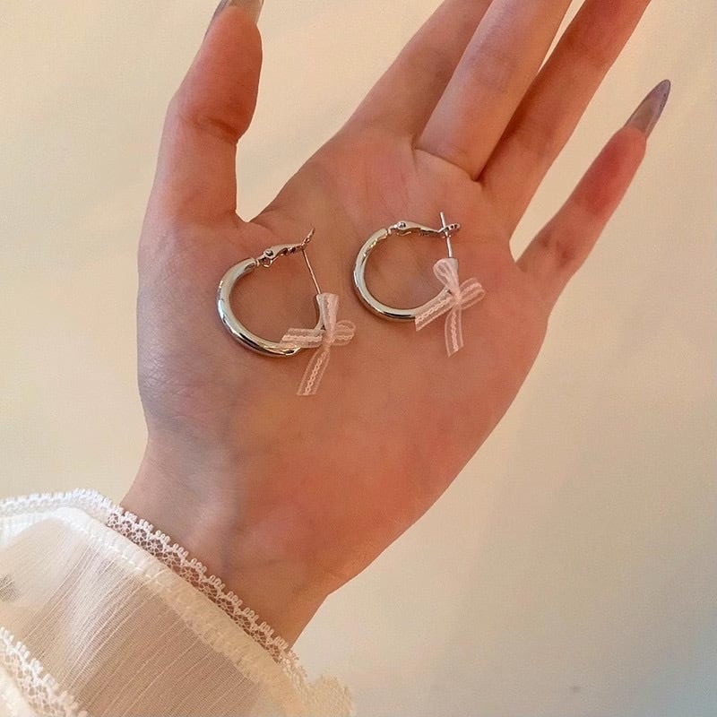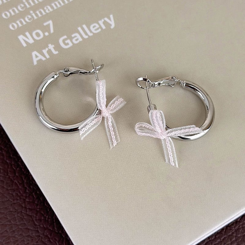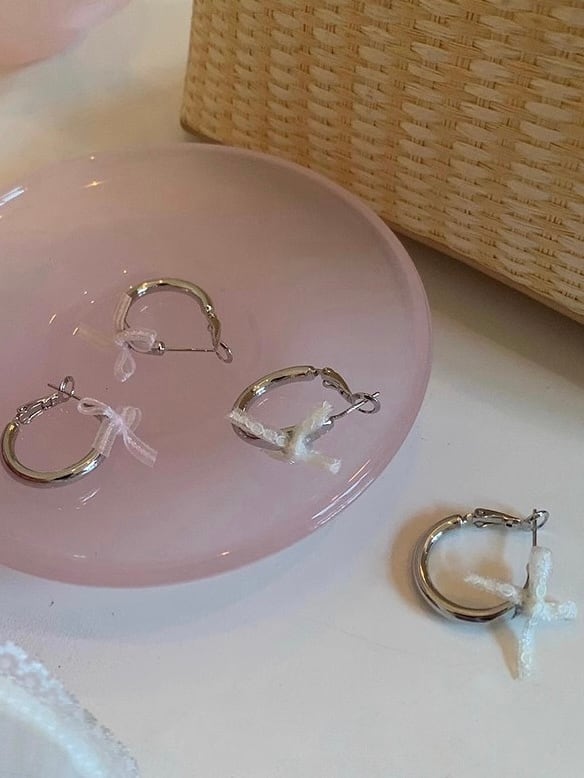 シルバーにガーリーなレースリボンがアクセントのピアス。