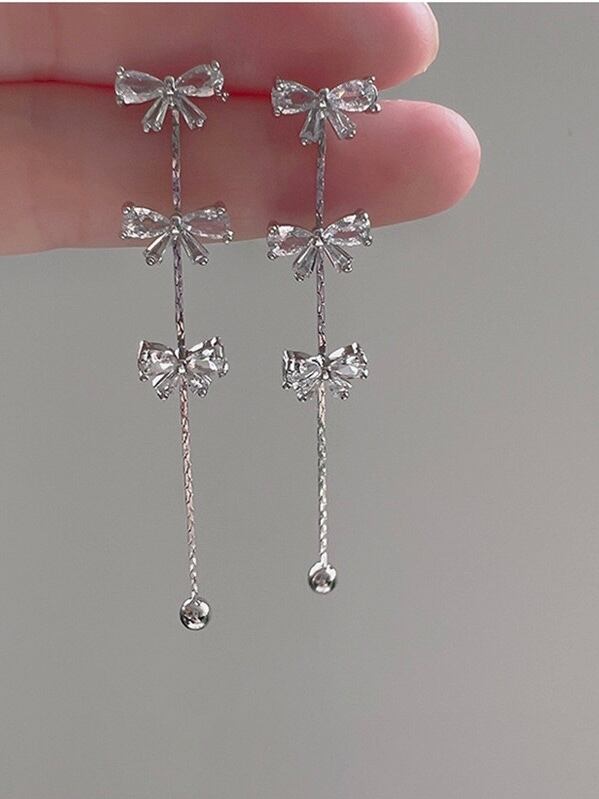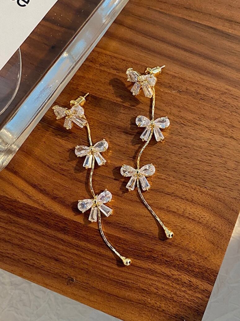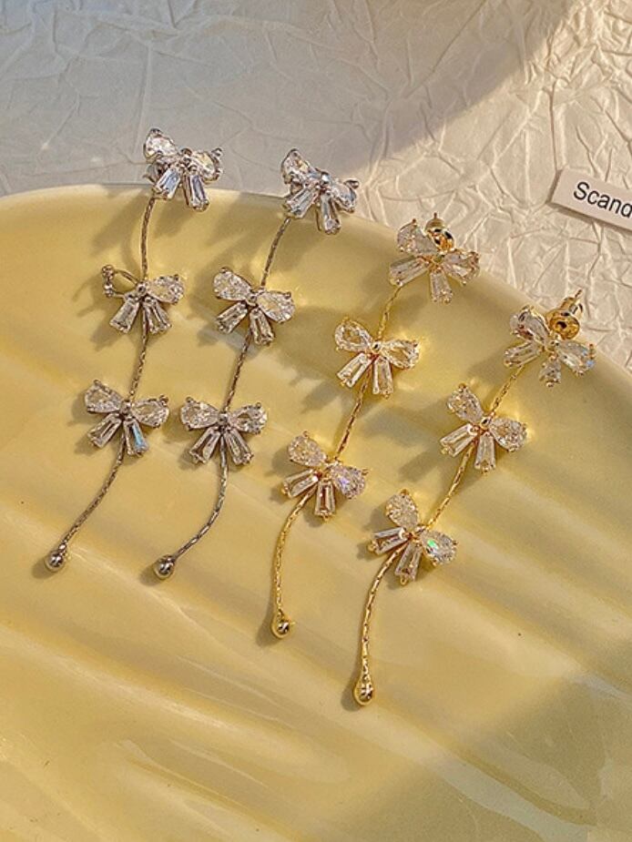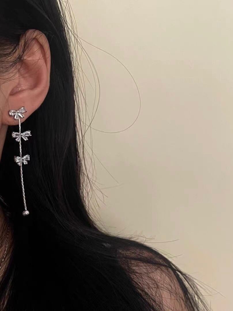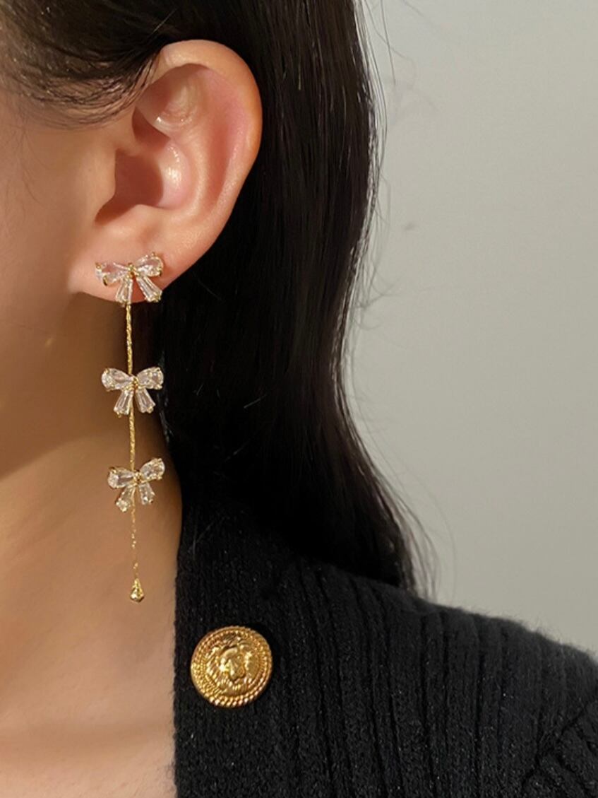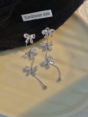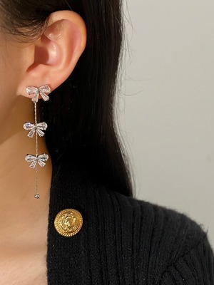 リボンが三連に連なっているデザインですが、キャッチを変えるとシンプルな単体ピアスとしてもお使いいただけます。