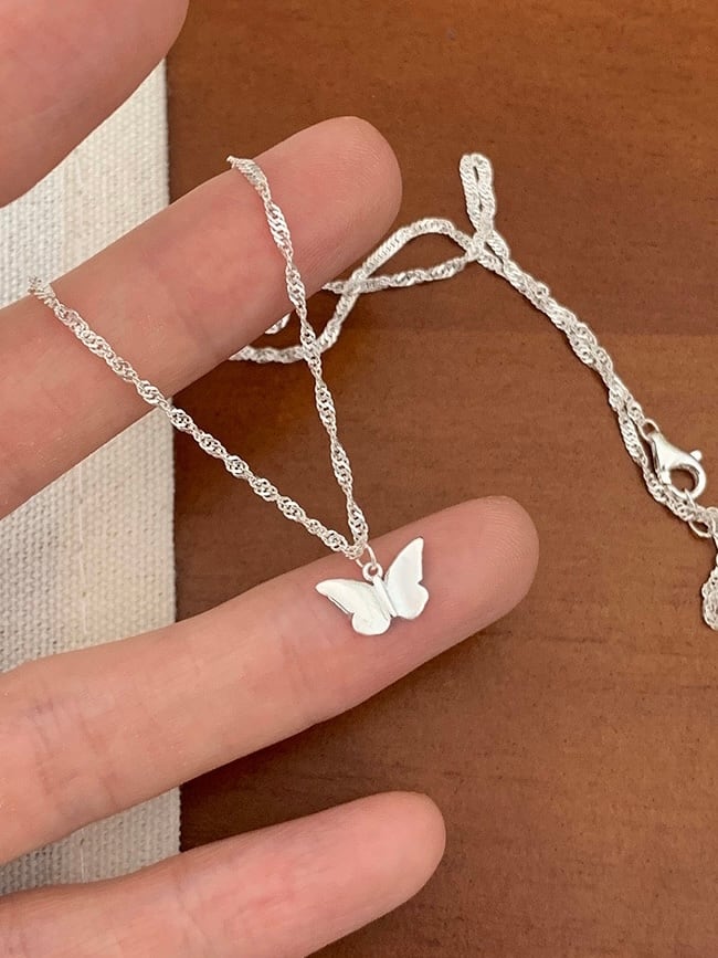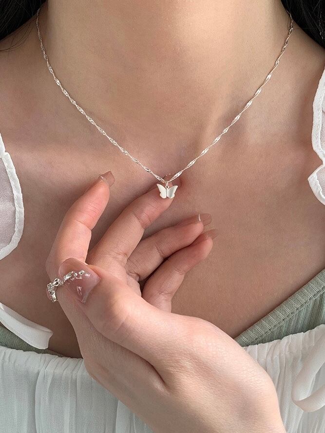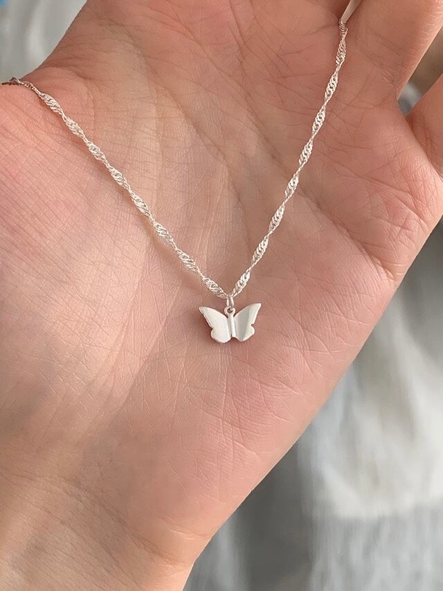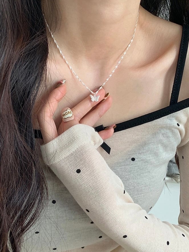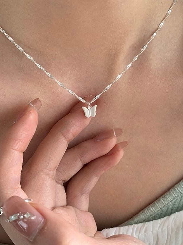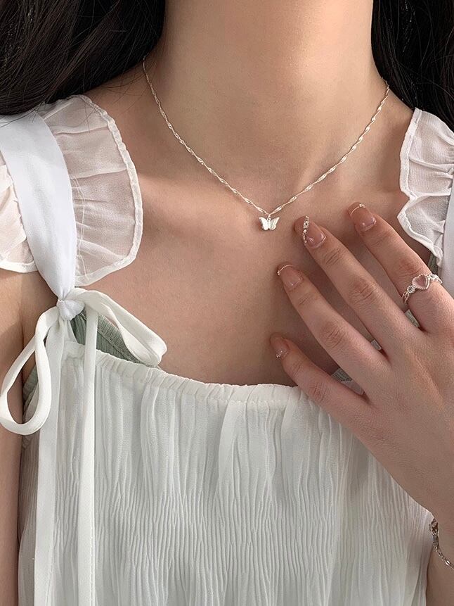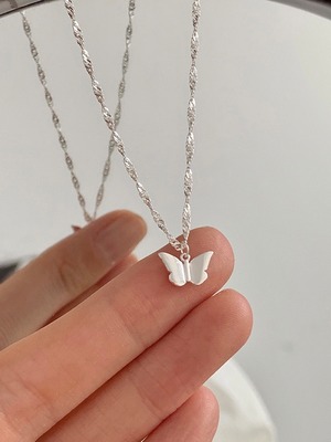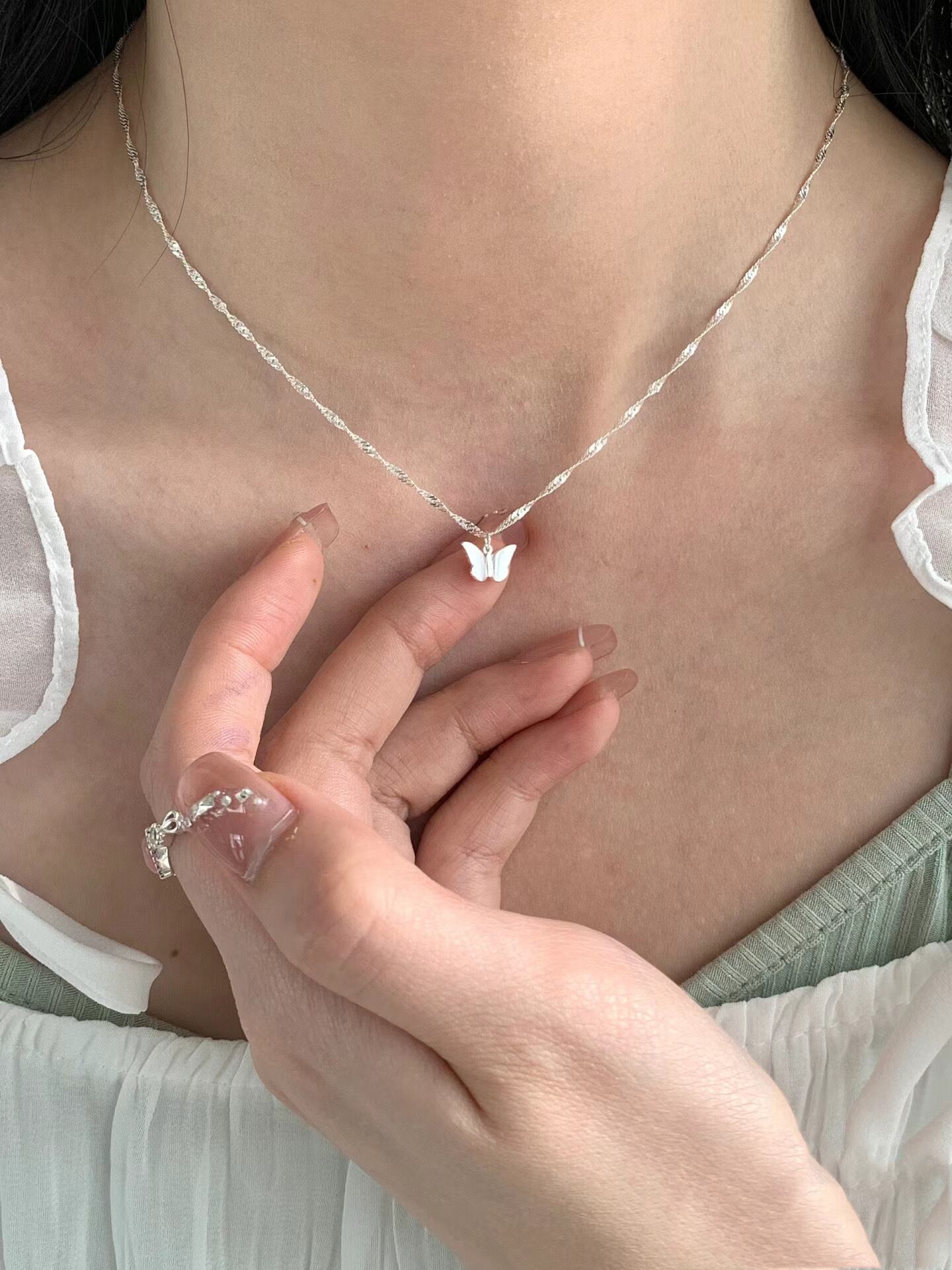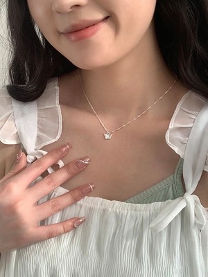 チェーンが少しねじれているデザインのため、動くたびに首元がキラキラとします。