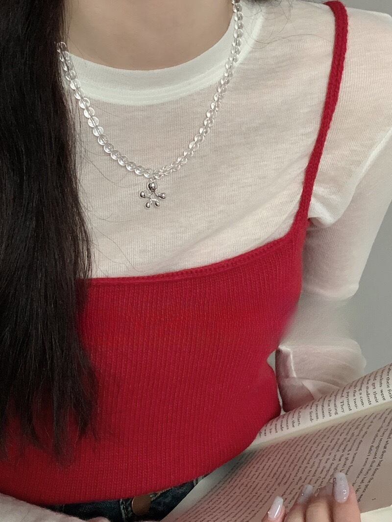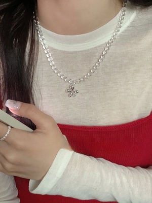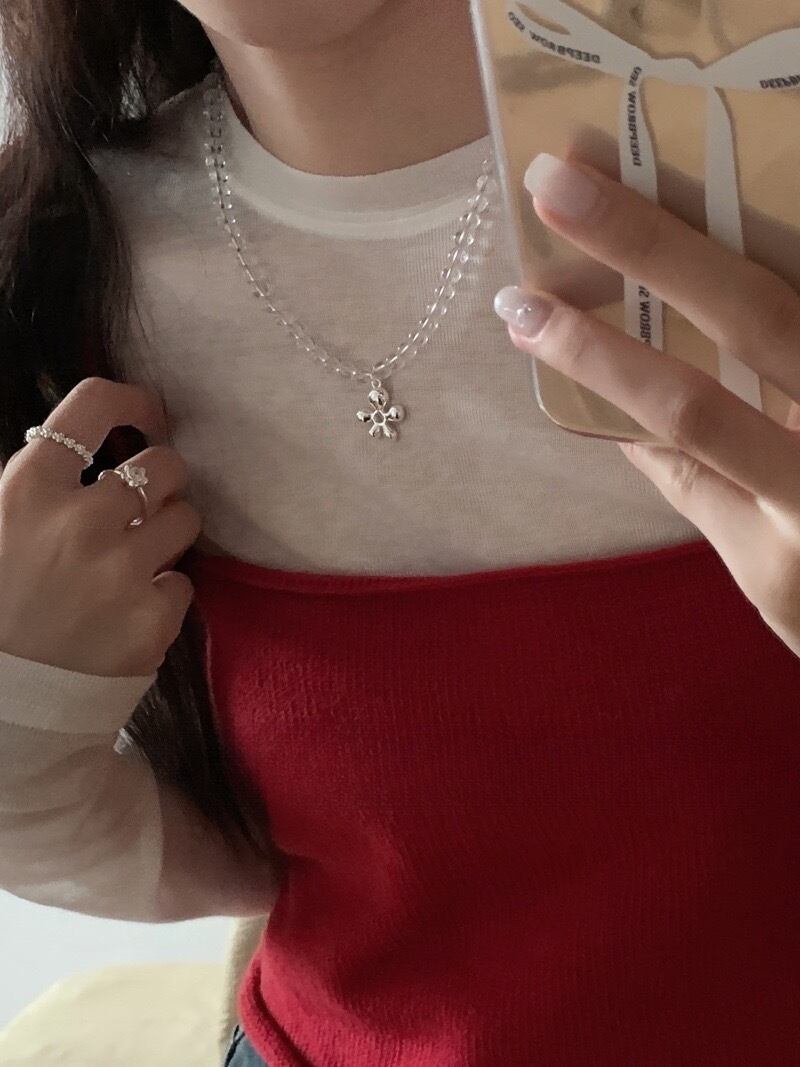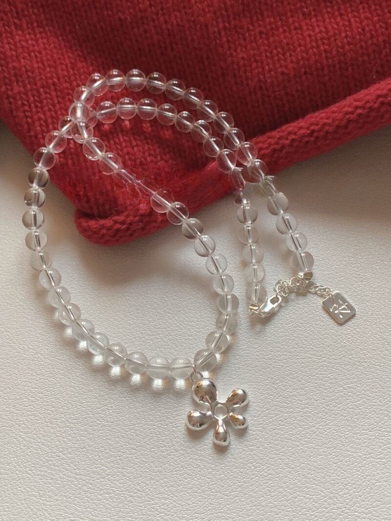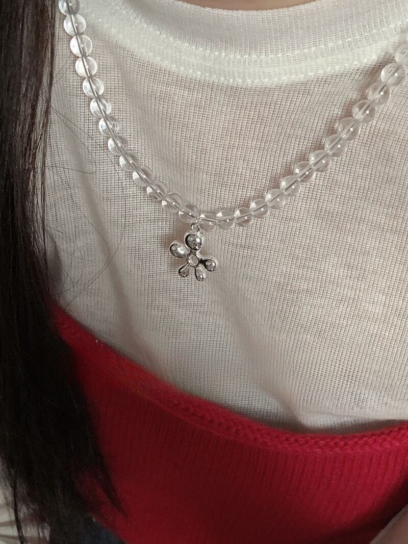 透明なビーズとシルバーのチャームが可愛らしいネックレス。