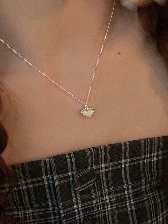 丸みのあるハートが優しい印象を与えてくれるネックレス。