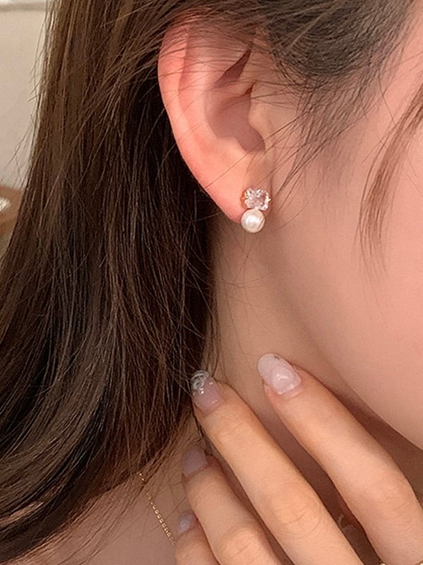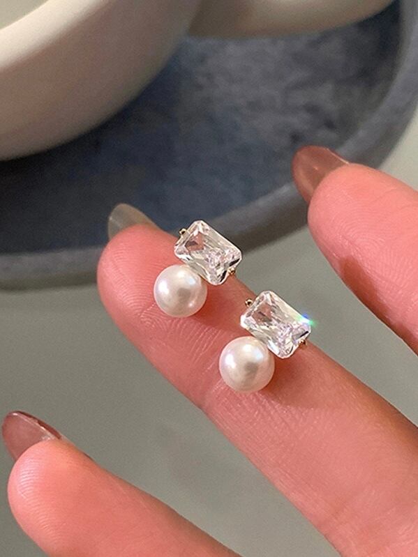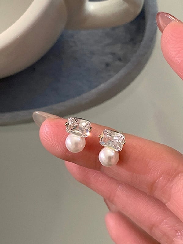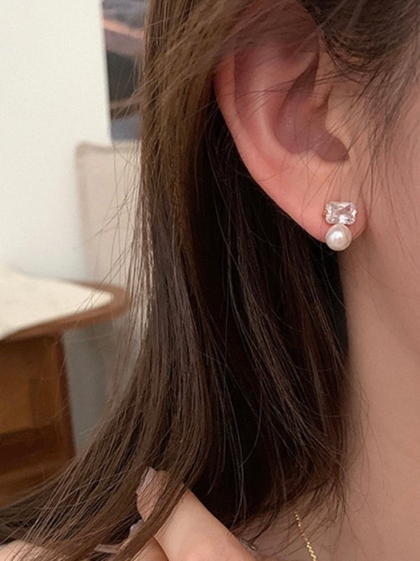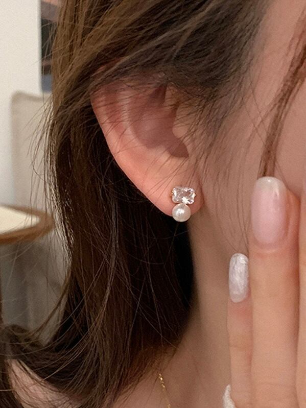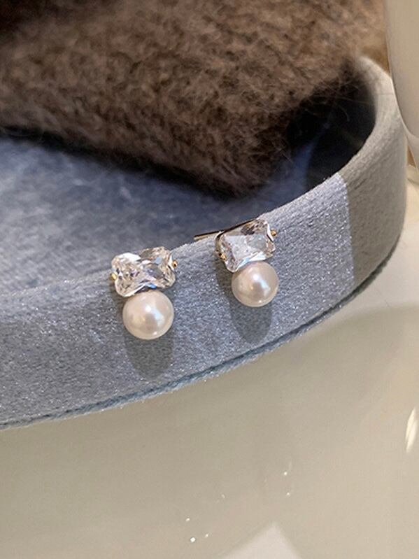スクエア型のストーンとパールが高級感のあるピアス。