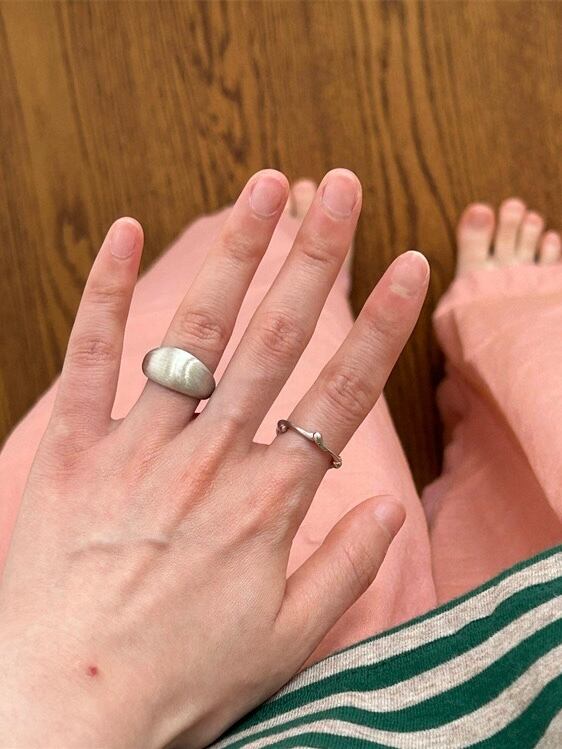 質感の違うシルバーで重ねづけしやすいです。