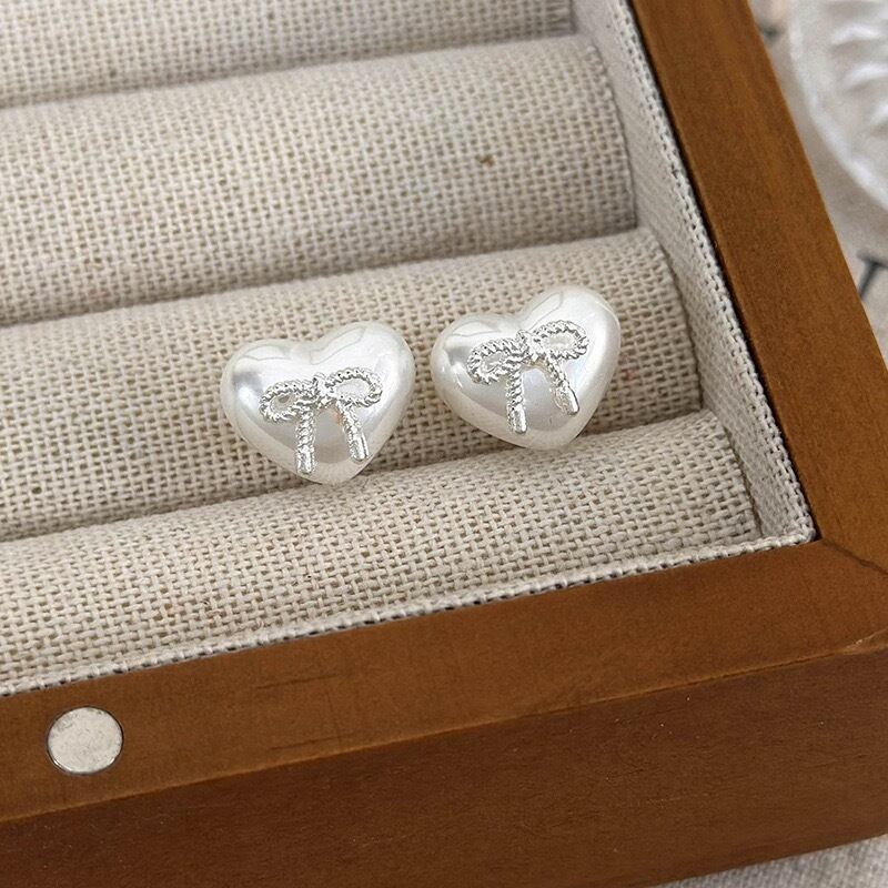パールとリボンが可愛らしいピアス。