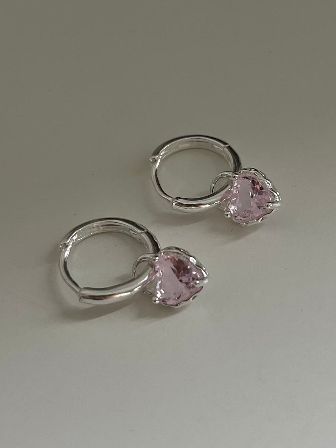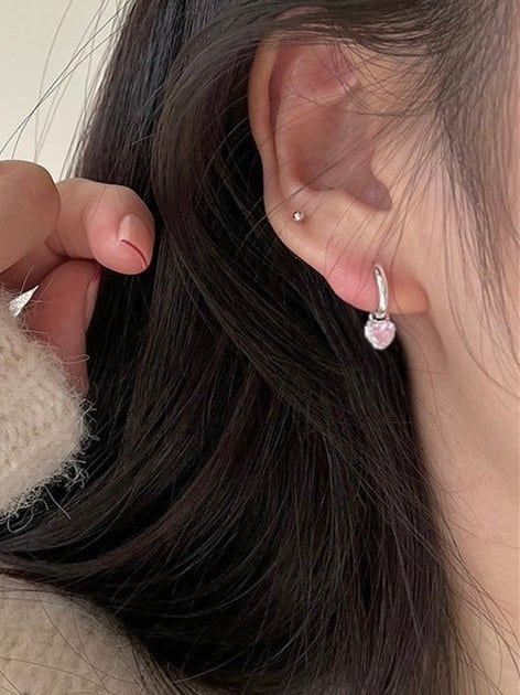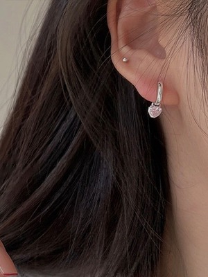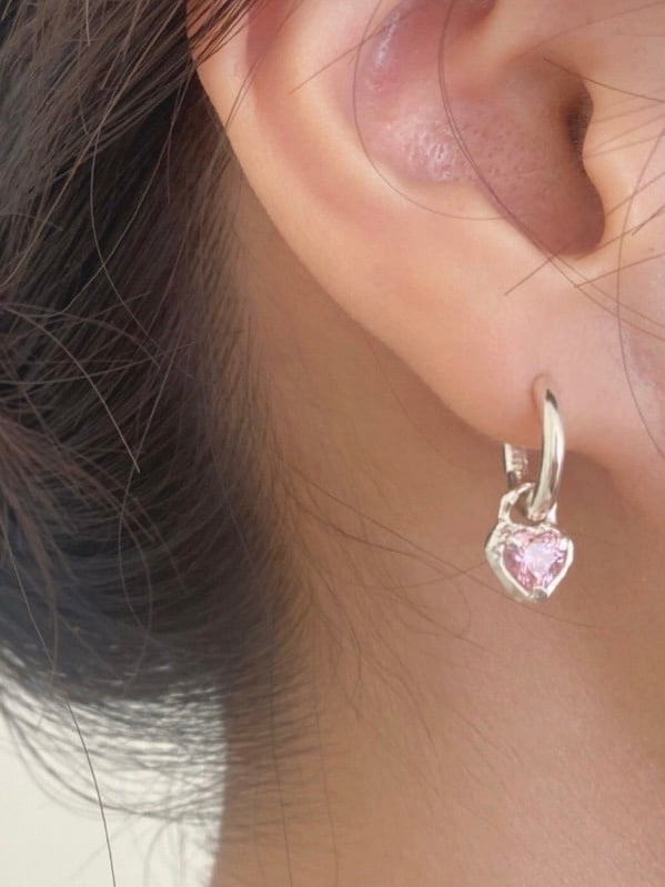 ピンクカラーのハートストーンがポイントのピアス。